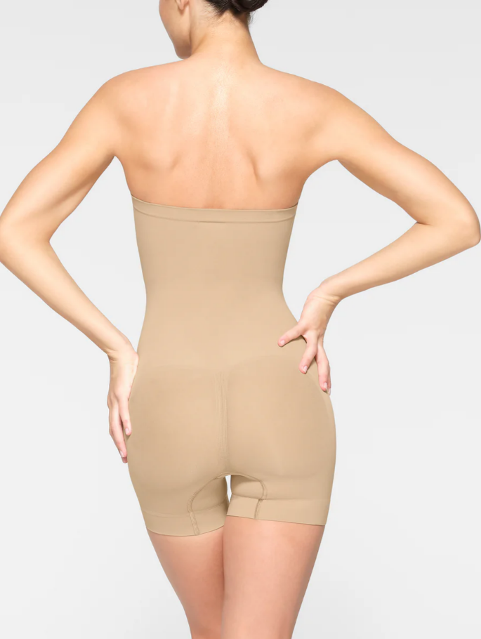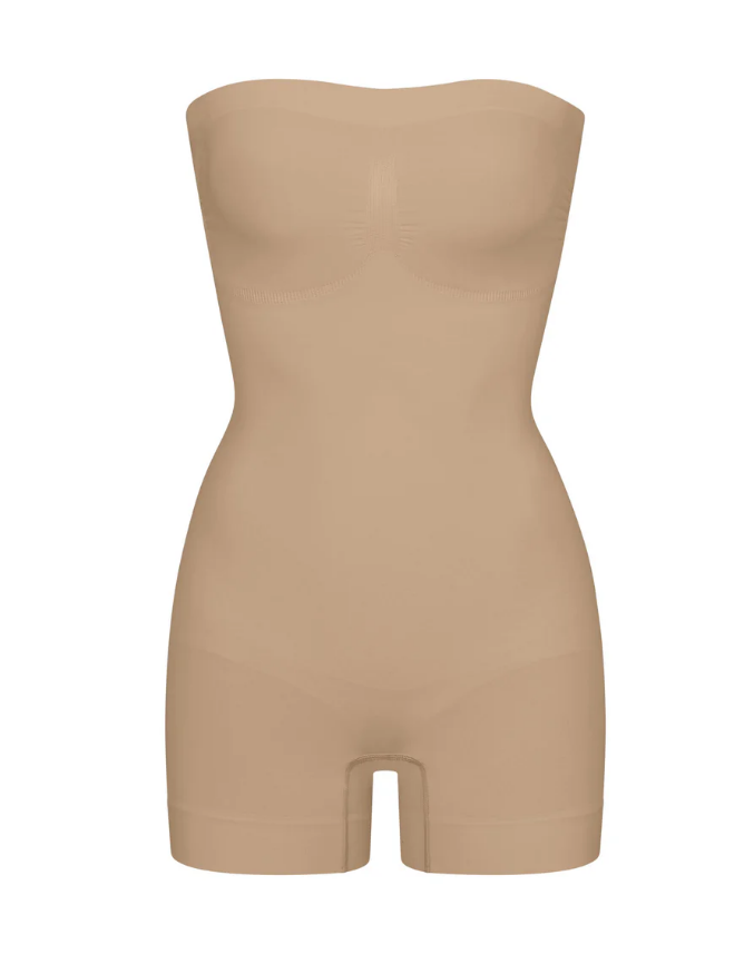 This strapless shortie solution is perfect for cinching your waist, holding in your tummy and core, and smoothing your thighs under mini skirts and dresses. Features pique stitching that supports your bust, an open gusset, and removable adjustable straps that you can wear as shoulder straps, cross back, or as a halter.